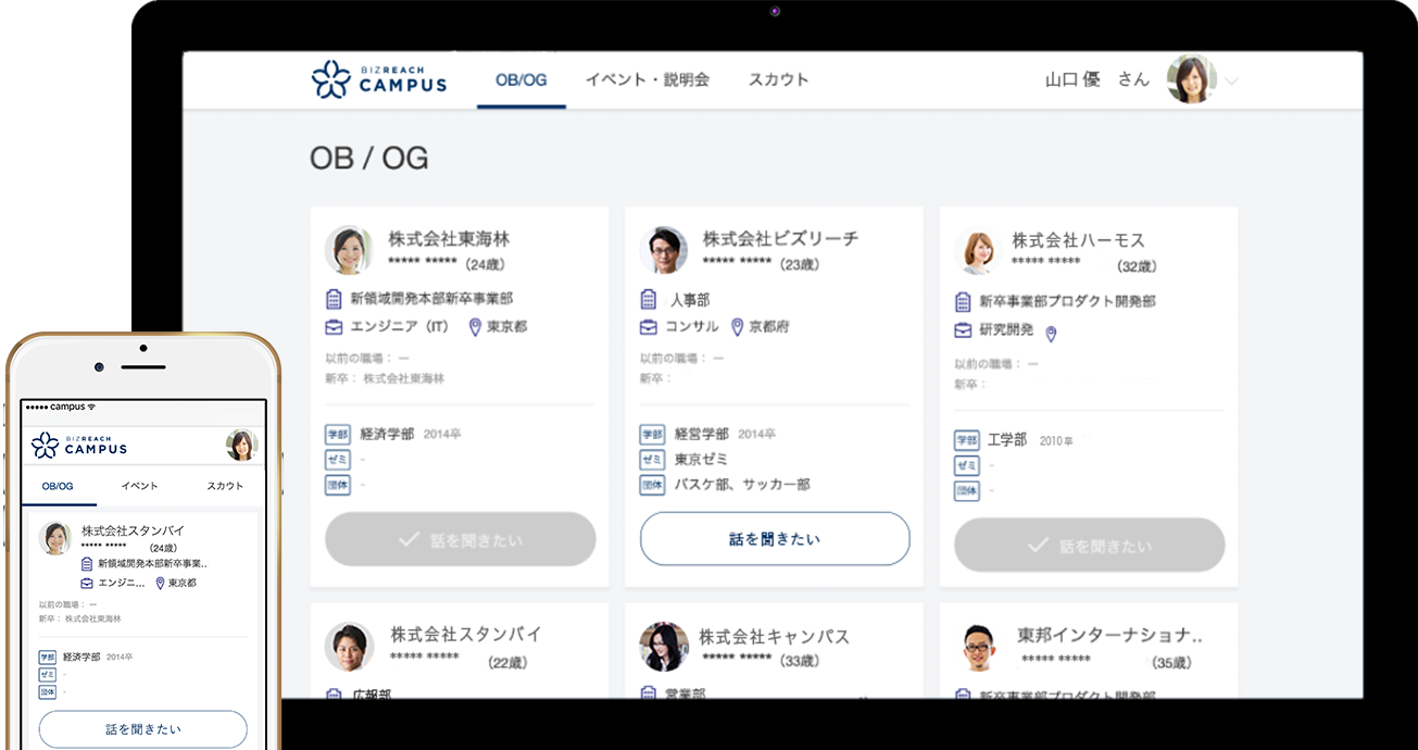 ①ビズリーチキャンパス対象大学の方(東大京大など旧帝大7校、東工一橋早慶、理科大MARCH同立など)